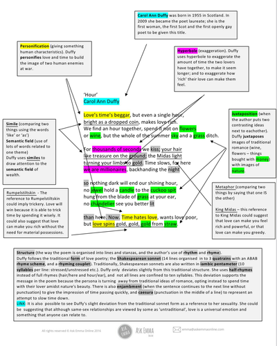 Hour By Carol Ann Duffy Annotated Poem